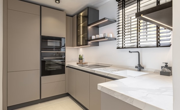 This townhouse for sale in Nova Santa Ponsa, Mallorca combines timeless Mediterranean design, premium finishes, and a privileged location in one of the island’s most sought-after residential areas. Fully renovated and elegantly furnished, the townhouse is immediately ready to move in, offering 130 m² of living space with two bedrooms and two bathrooms. The open-plan living and dining area with large panoramic windows seamlessly blends with the sparkling Mediterranean views. Featuring four private terraces, this townhouse in Nova Santa Ponsa provides unspoiled sun, spectacular sunsets, and stunning coastal vistas. Every detail, from high-quality materials to sophisticated lighting and Italian designer kitchens, has been carefully curated to create a luxurious and comfortable ambiance.