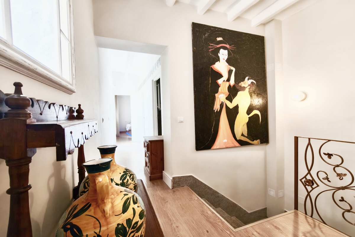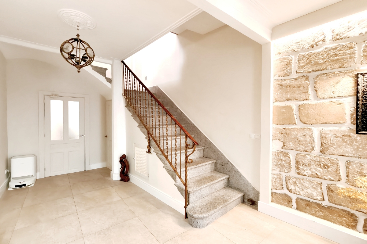 Wonderful cozy detached house in the beautiful Andratx area next to the Cathedral. The house consists of three floors and a spacious roof terrace. Living area - 174m2, and construction - a little more than 200m2. A complete renovation was carried out in 2025. Inside the house there is a unique light atmosphere. On the lower floor there is a spacious kitchen with a pantry, bedroom, an entrance hall that smoothly turns into a living room, an office and a bathroom for guests. On the next two floors there are 4 bedrooms with bathrooms and a dressing room. The rooftop terrace offers breathtaking views of the city, the Port of Andratx, the sea and the mountains. AC is in every single room. Gas central Heating.