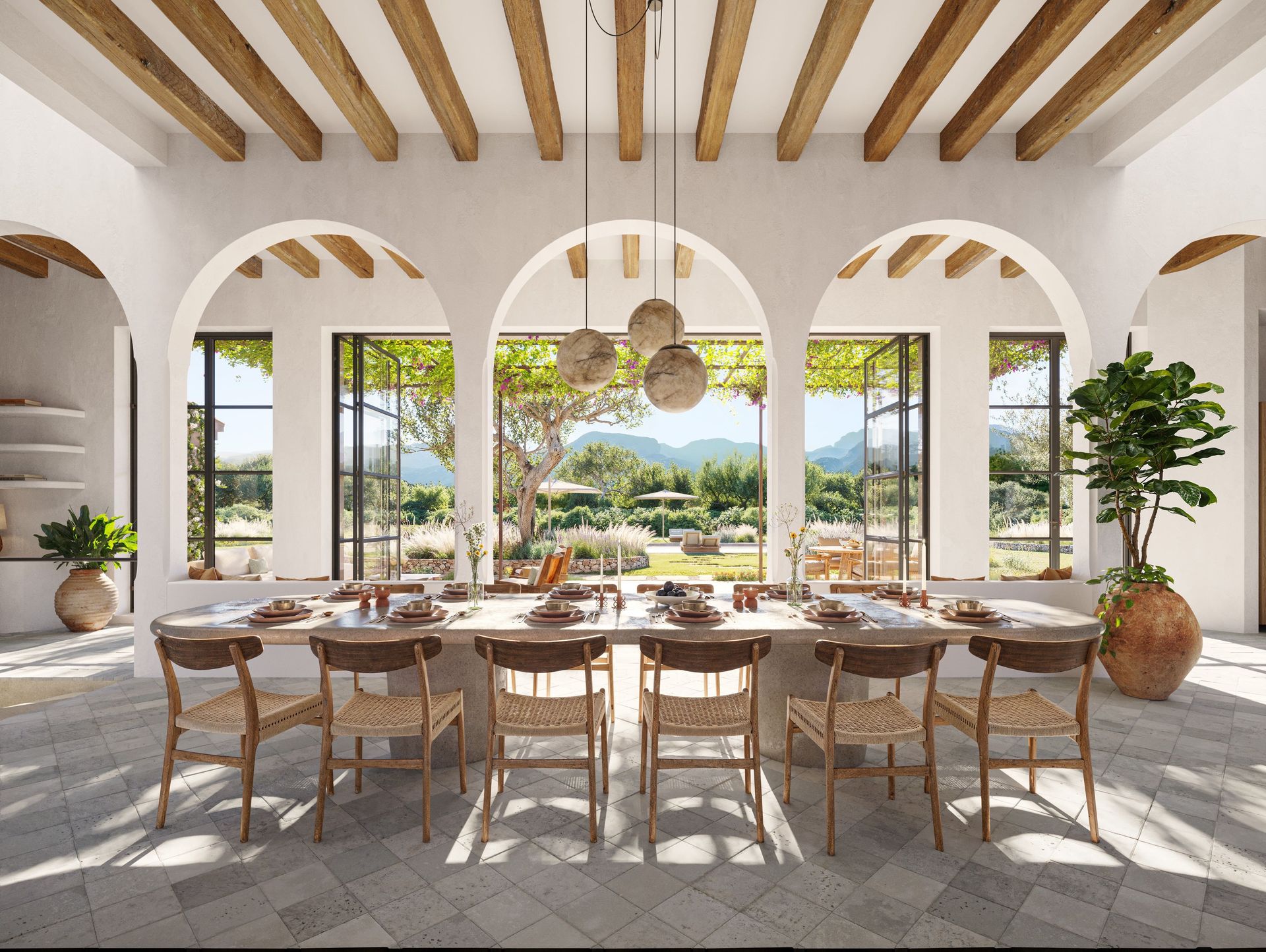 This Mallorca Finca is designed for modern living while preserving traditional island character. The open-plan living spaces feature high-quality finishes and natural materials, creating a warm and elegant atmosphere. The fully equipped kitchen is perfect for family meals or entertaining guests. Outdoors, the property offers expansive terraces, a swimming pool, and meticulously landscaped gardens. Additional amenities include a basement with a private cinema, gym, and wellness area, ensuring the highest level of comfort and luxury. This Mallorca Finca truly exemplifies refined island living combined with contemporary conveniences.